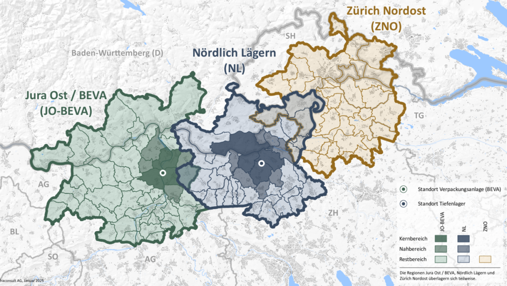 Der Bund muss sicherstellen, dass die in der Schweiz anfallenden radioaktiven Abfälle im Inland sicher entsorgt werden. 2022 hat die NAGRA die Region Nördlich Lägern (NL) als Standortgebiet für die Realisierung des geologischen Tiefenlagers vorgeschlagen, ausserdem die Realisierung einer Verpackungsanlage (BEVA) in Würenlingen. Es ist unklar, welche Auswirkungen das Standortauswahlverfahren und der spätere Bau des Tiefenlagers und der BEVA auf die betroffenen Standortregionen haben. Begleitend zum Standortwahlverfahren ist deshalb ein Monitoring der sozioökonomischen und ökologischen Auswirkungen umgesetzt worden.